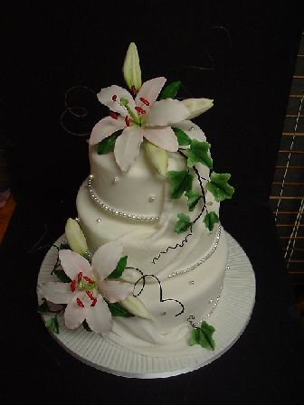 沢山ある資料の中から選ばれたのは、リアルサイズの薄いピンクのユリをメインにしたパールとファブリックが上品なデザインです。