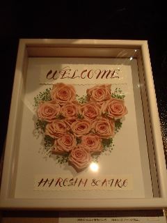 ウエルカムボードは、プリザーブドフラワーでAIKOさんが手作りしたものです〜。