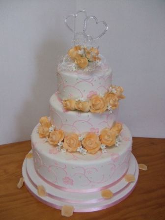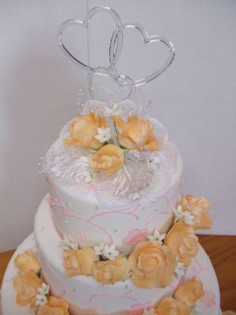 オレンジ色のバラが美しい、エレガントなウエディングケーキが完成いたしました♪